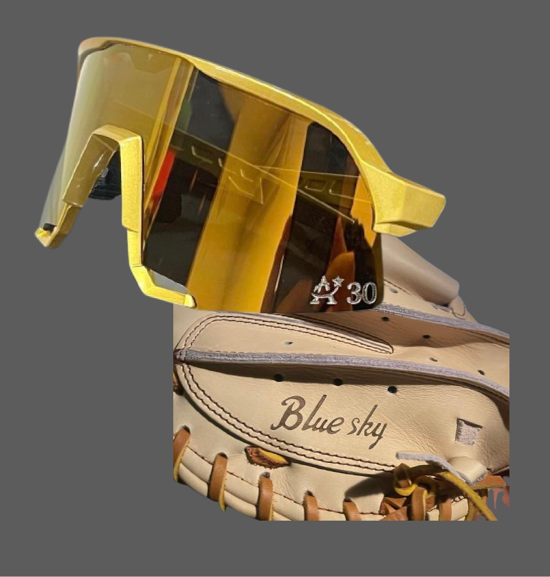 サングラスにレーザーでチームロゴを入れたり グローブに、名前を刻み自分だけのオリジナルのものにできます。